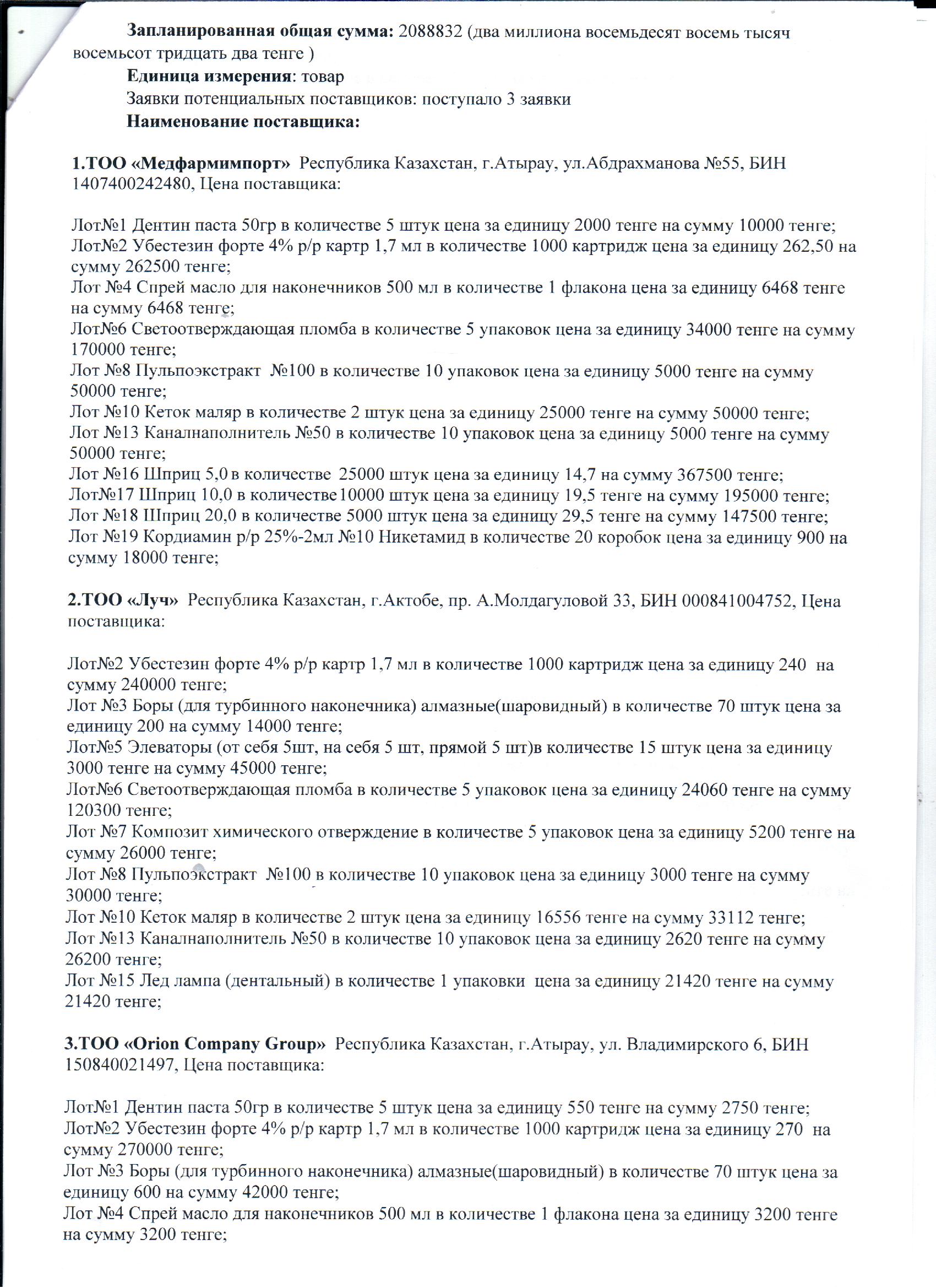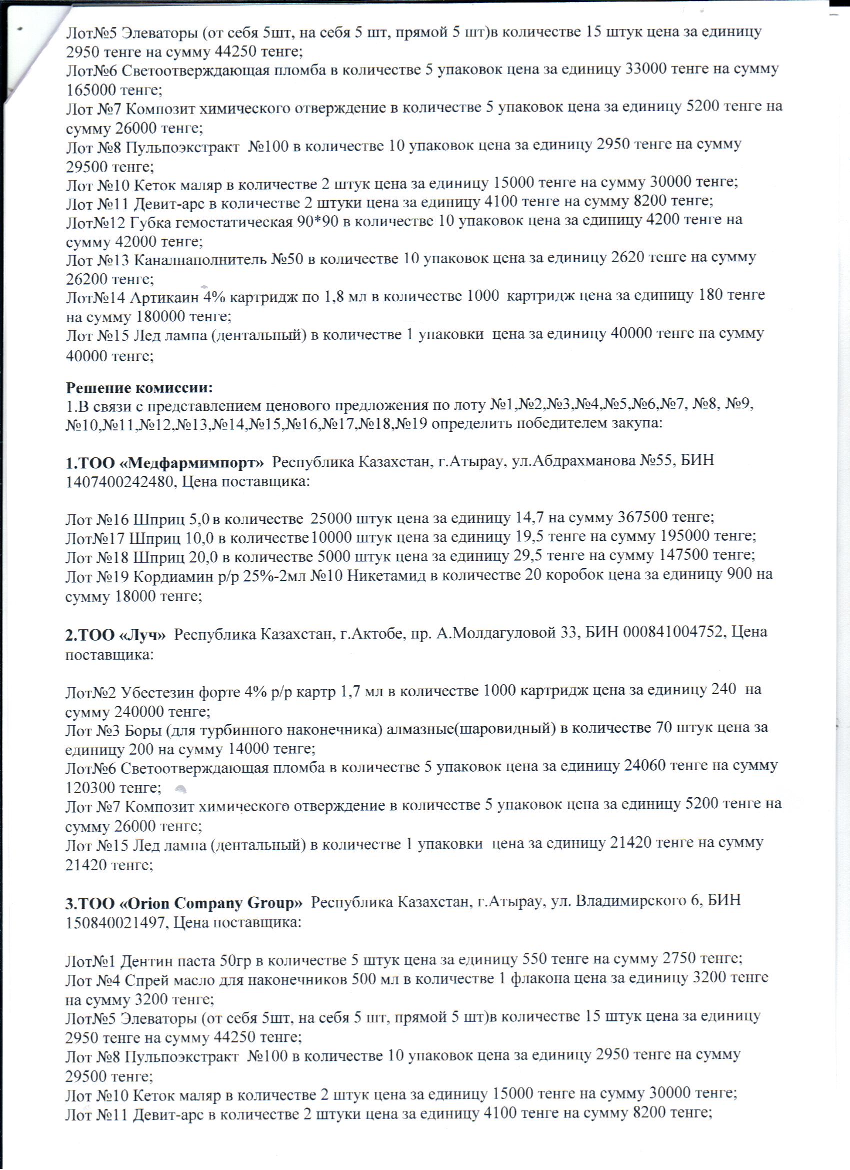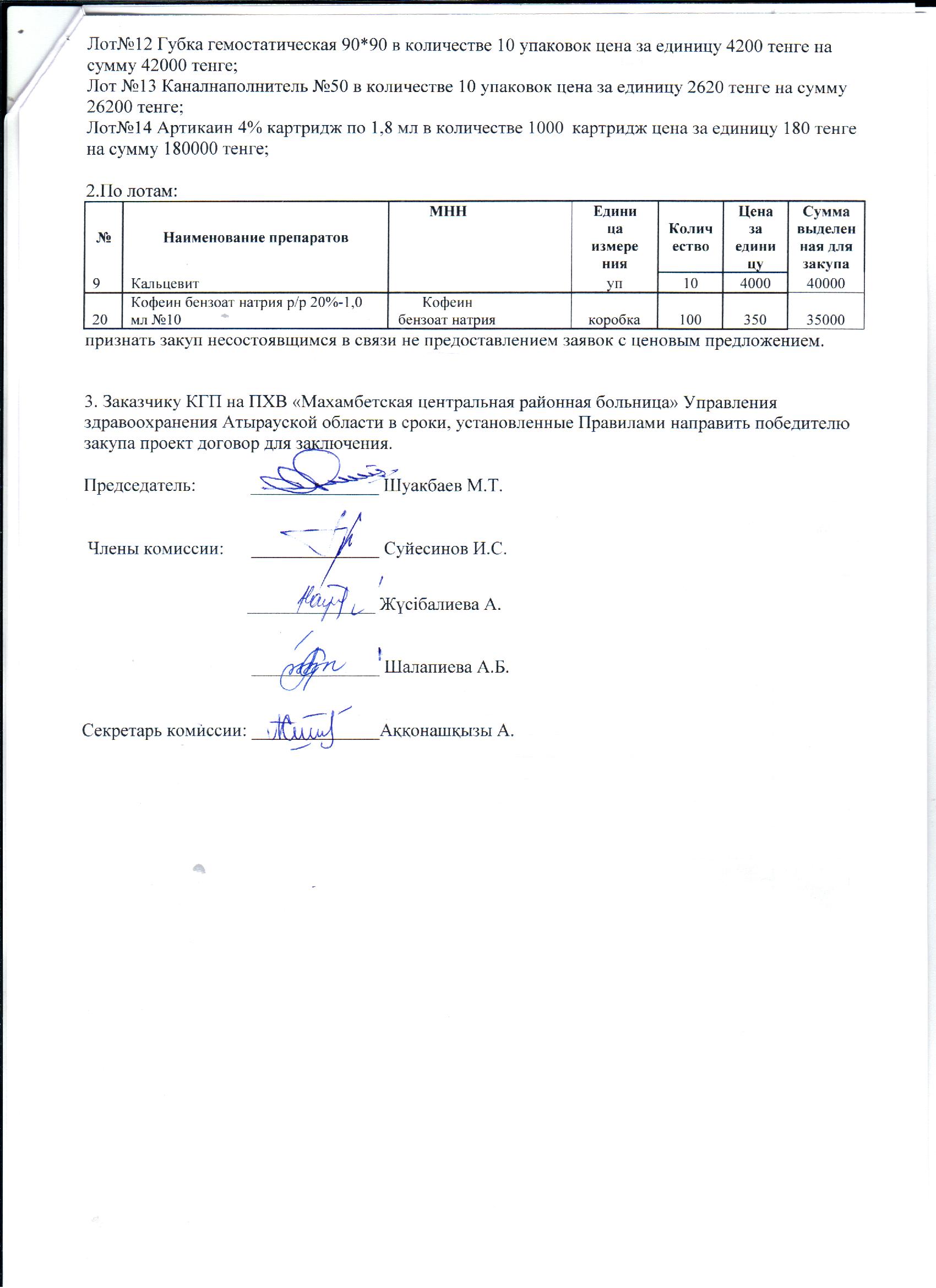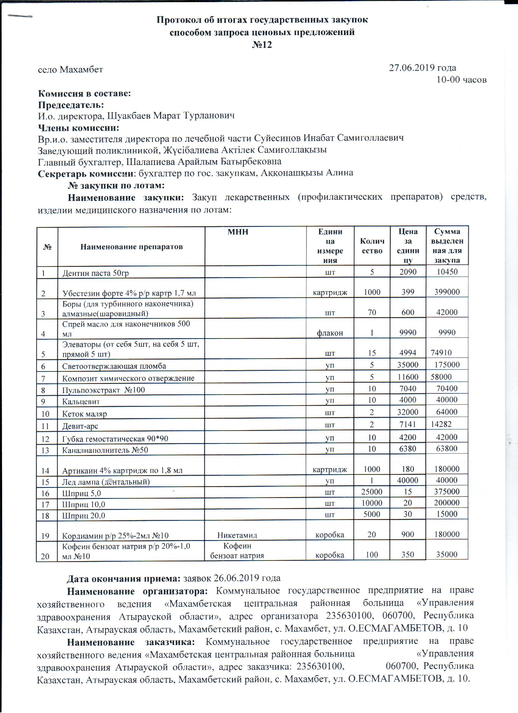 Протокол об итогах государственных закупок способом запроса ценовых предложений №12