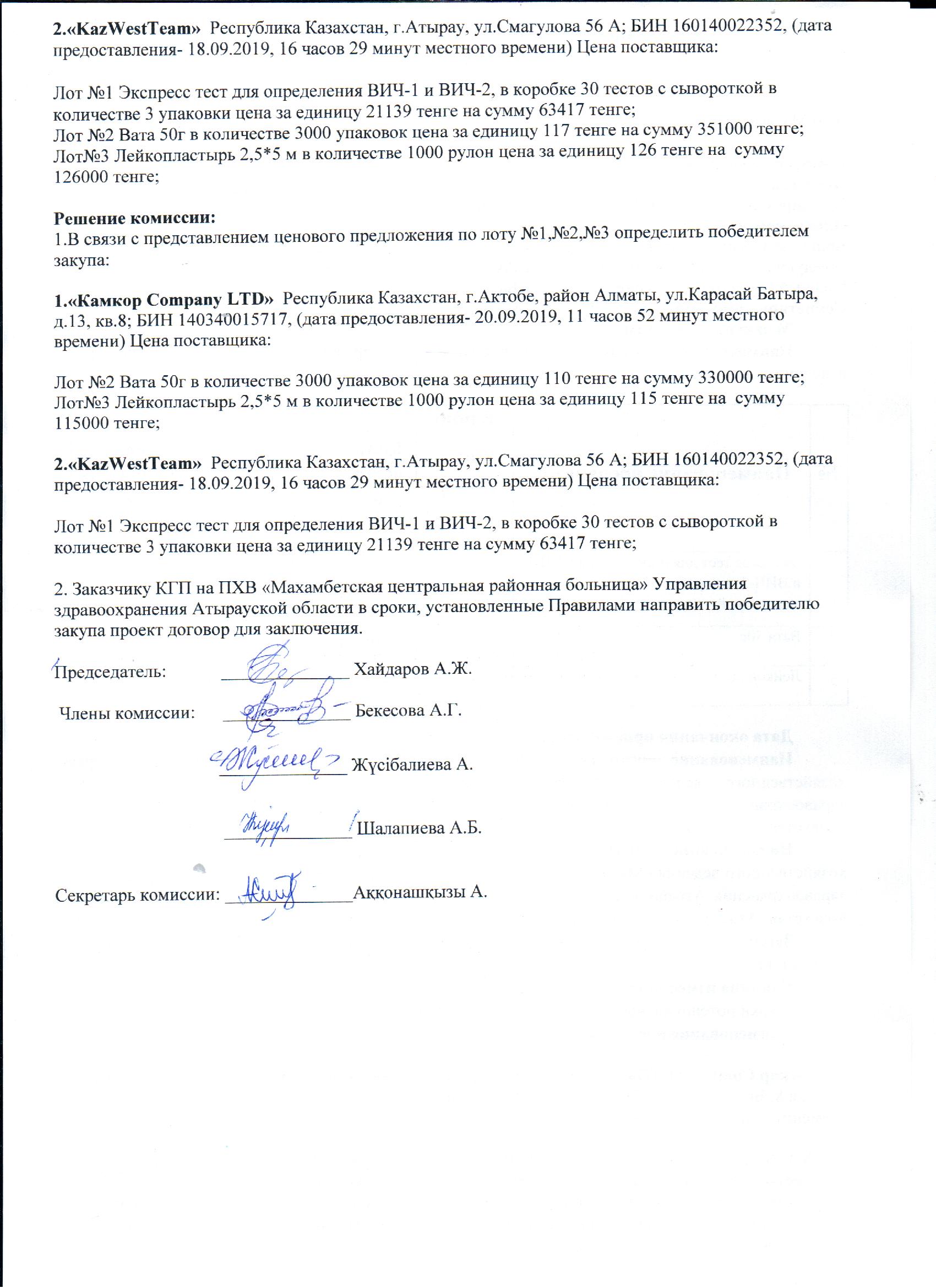 Протокол об итогах государственных закупок способом запроса ценовых предложений №16
