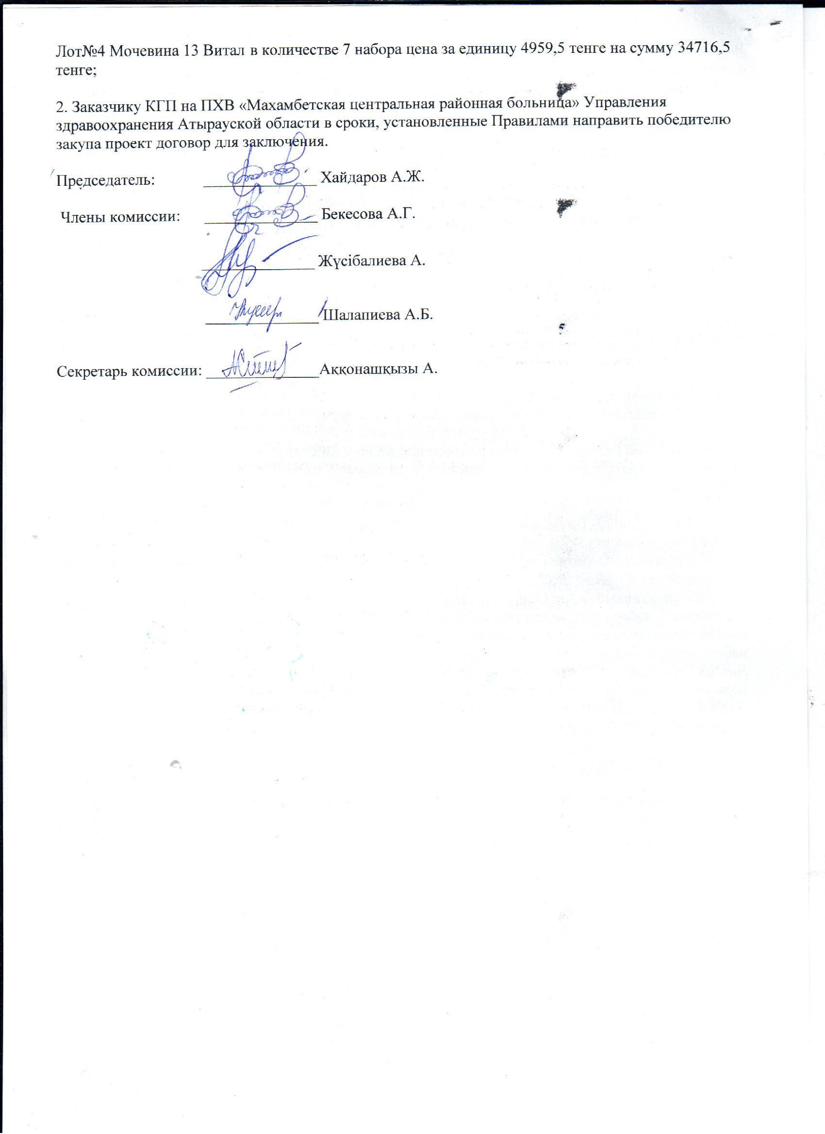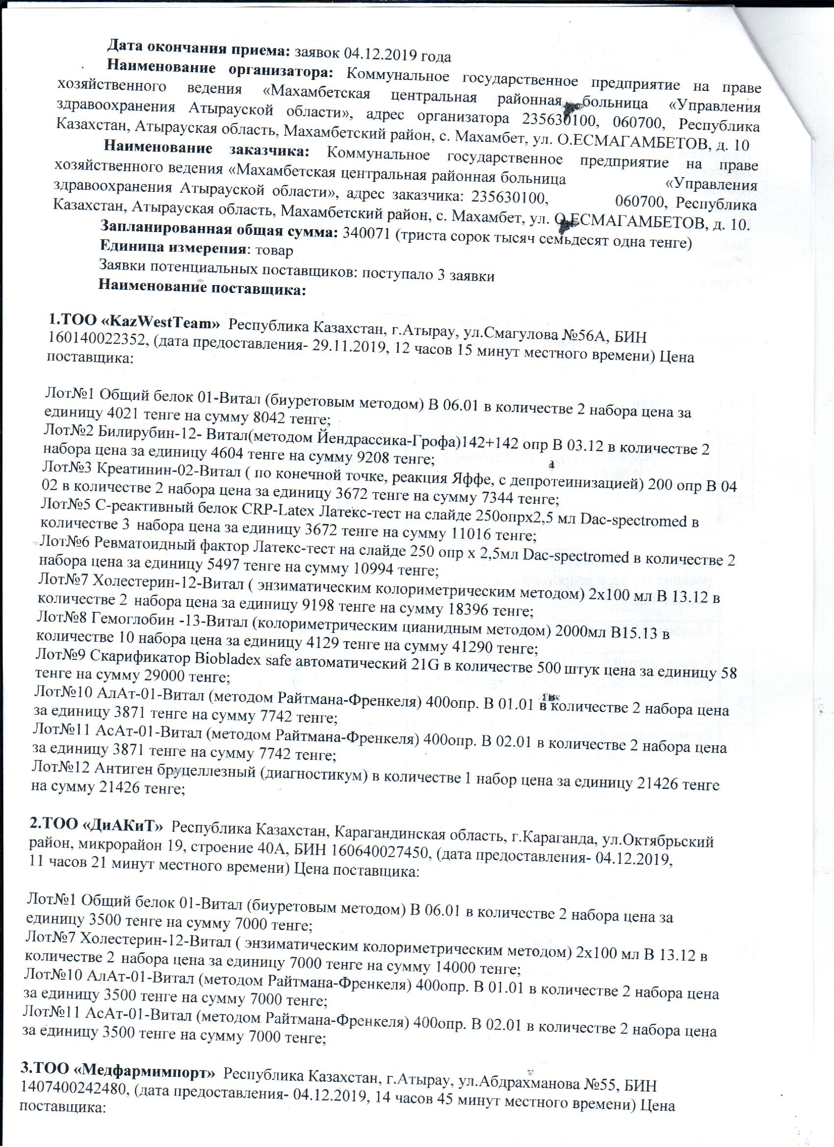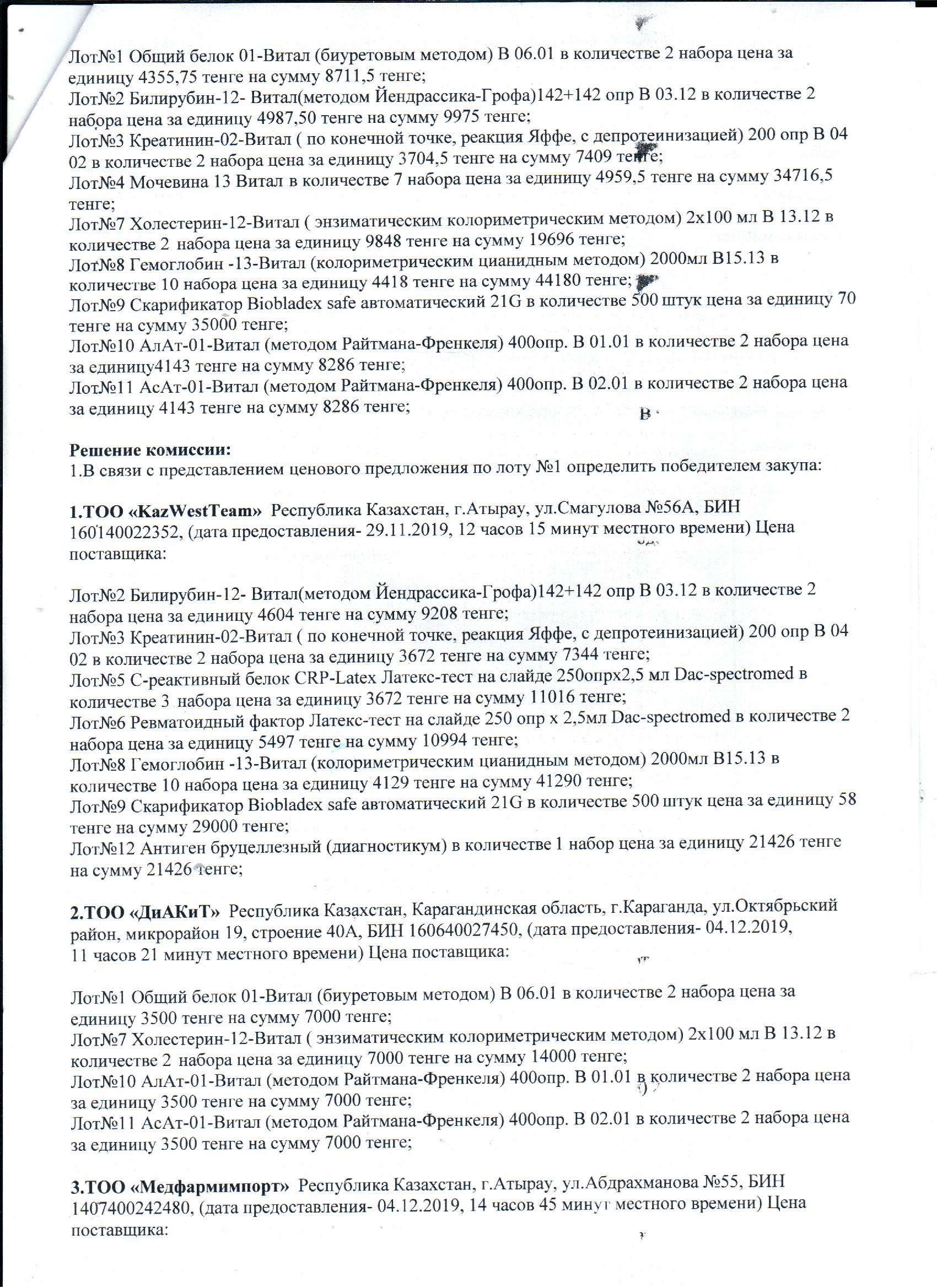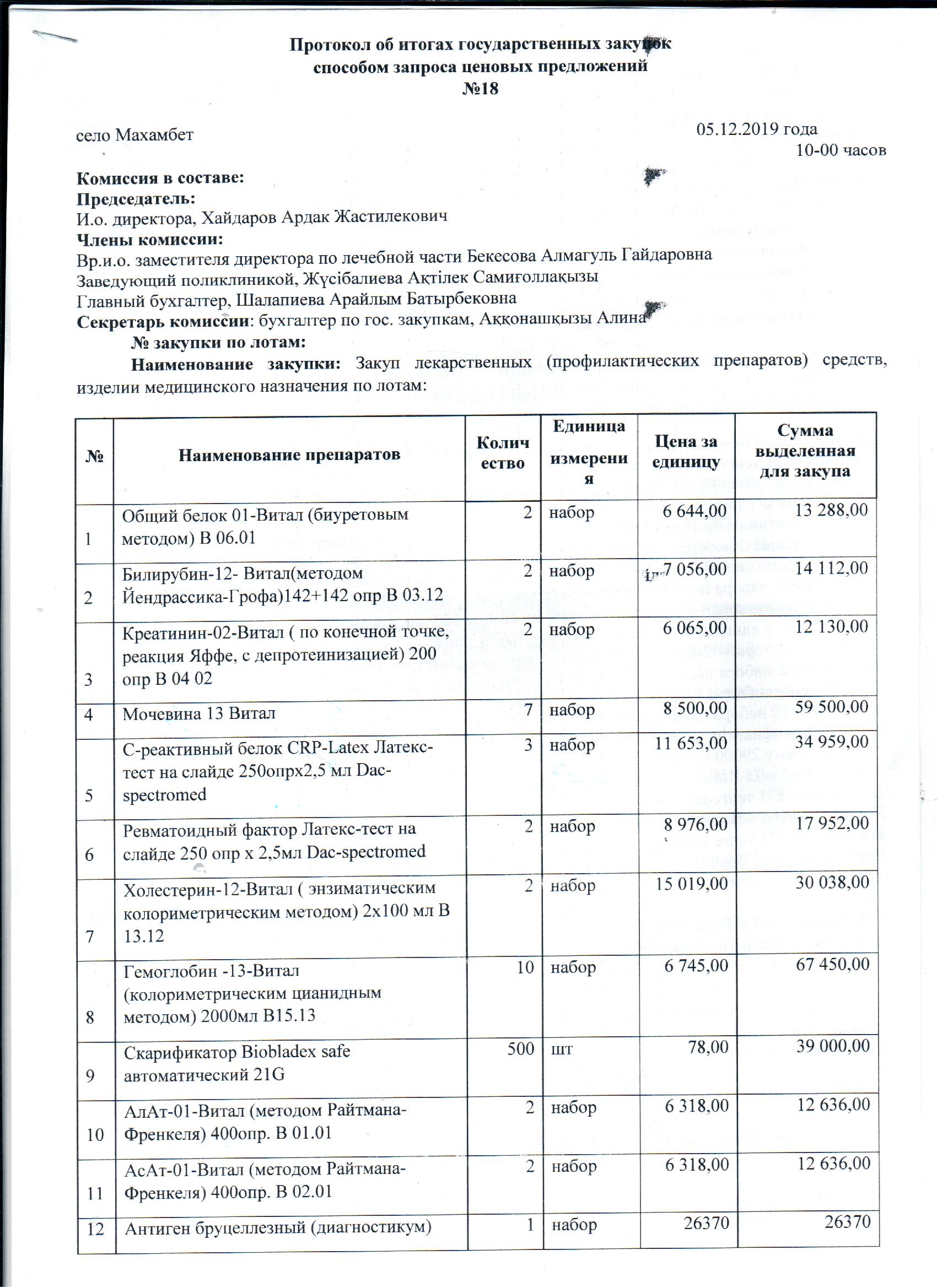 Протокол об итогах государственных закупок способом запроса ценовых предложений №18