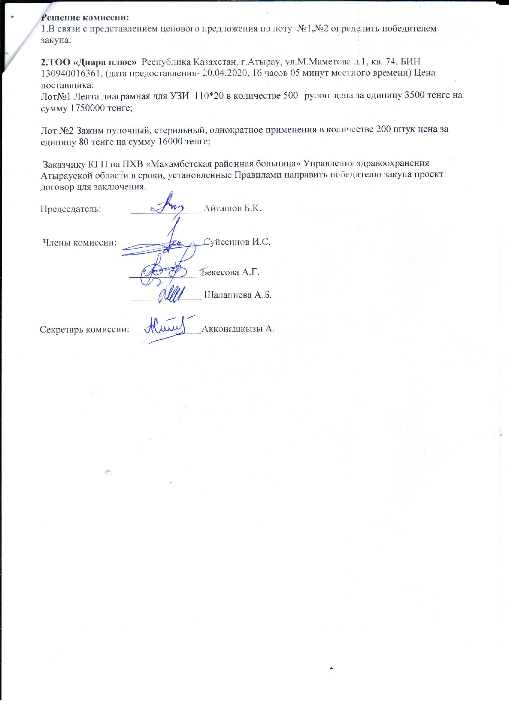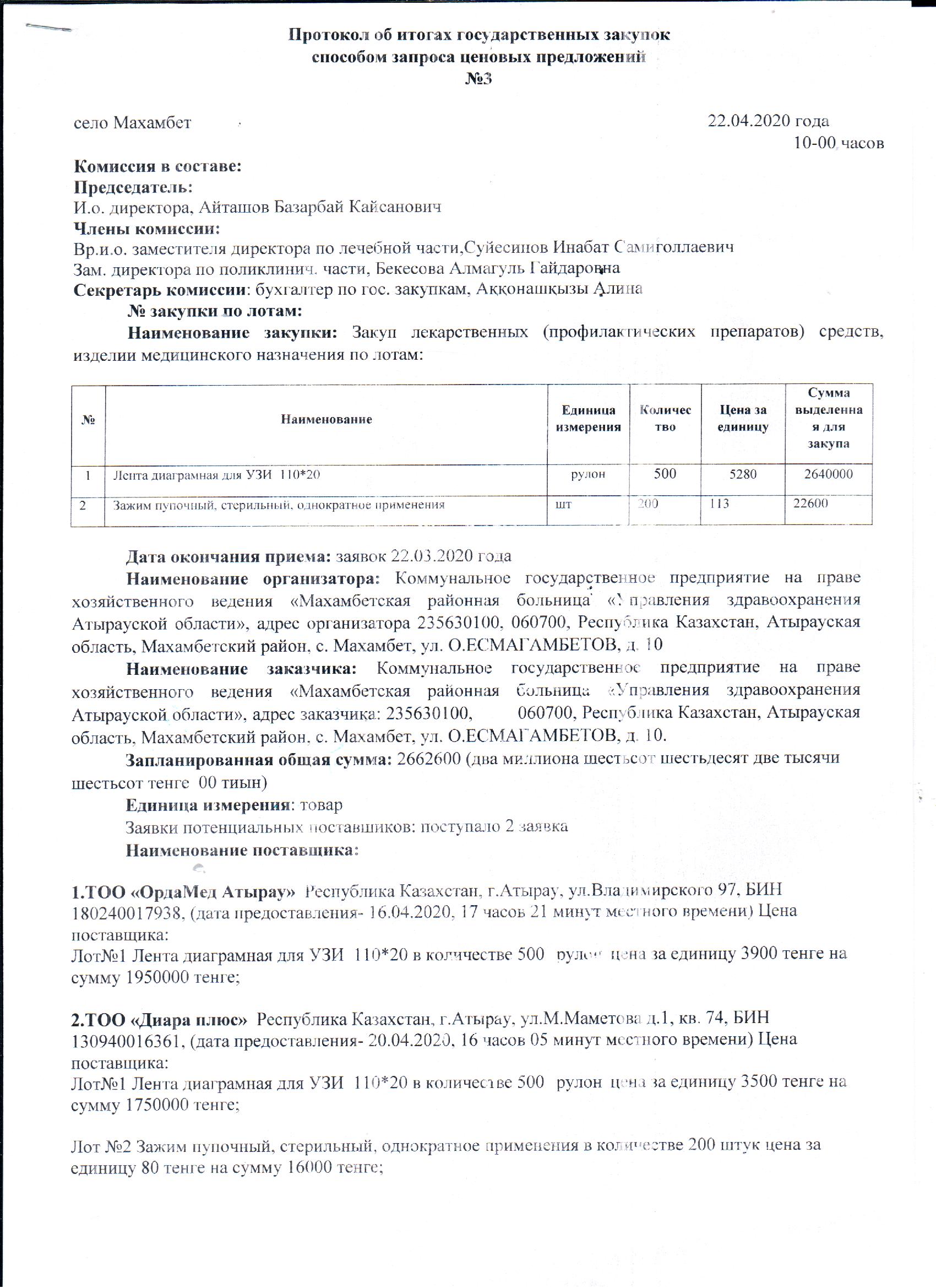 Протокол об итогах государственных закупок способом запроса ценовых предложений №3